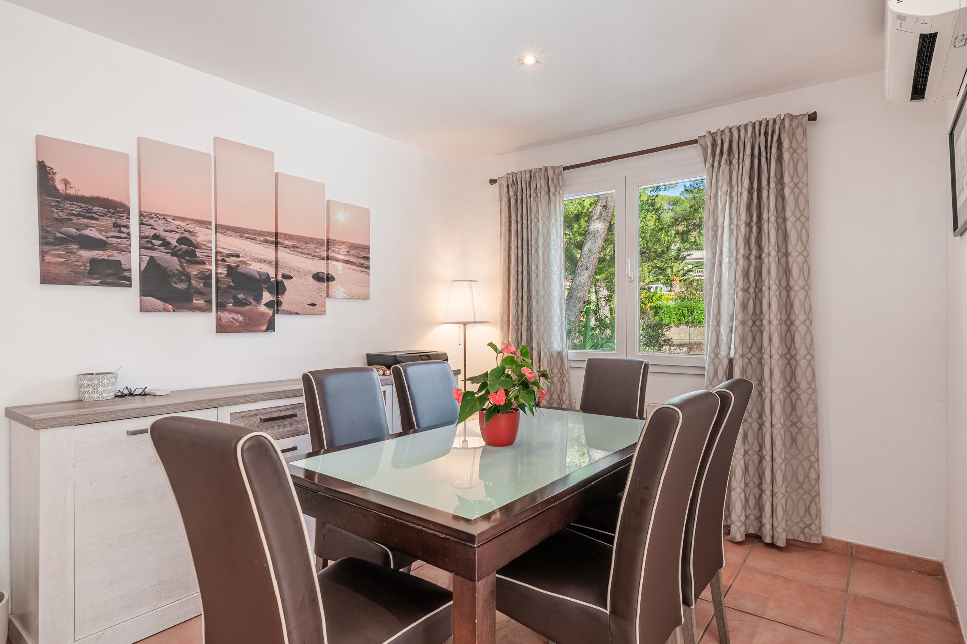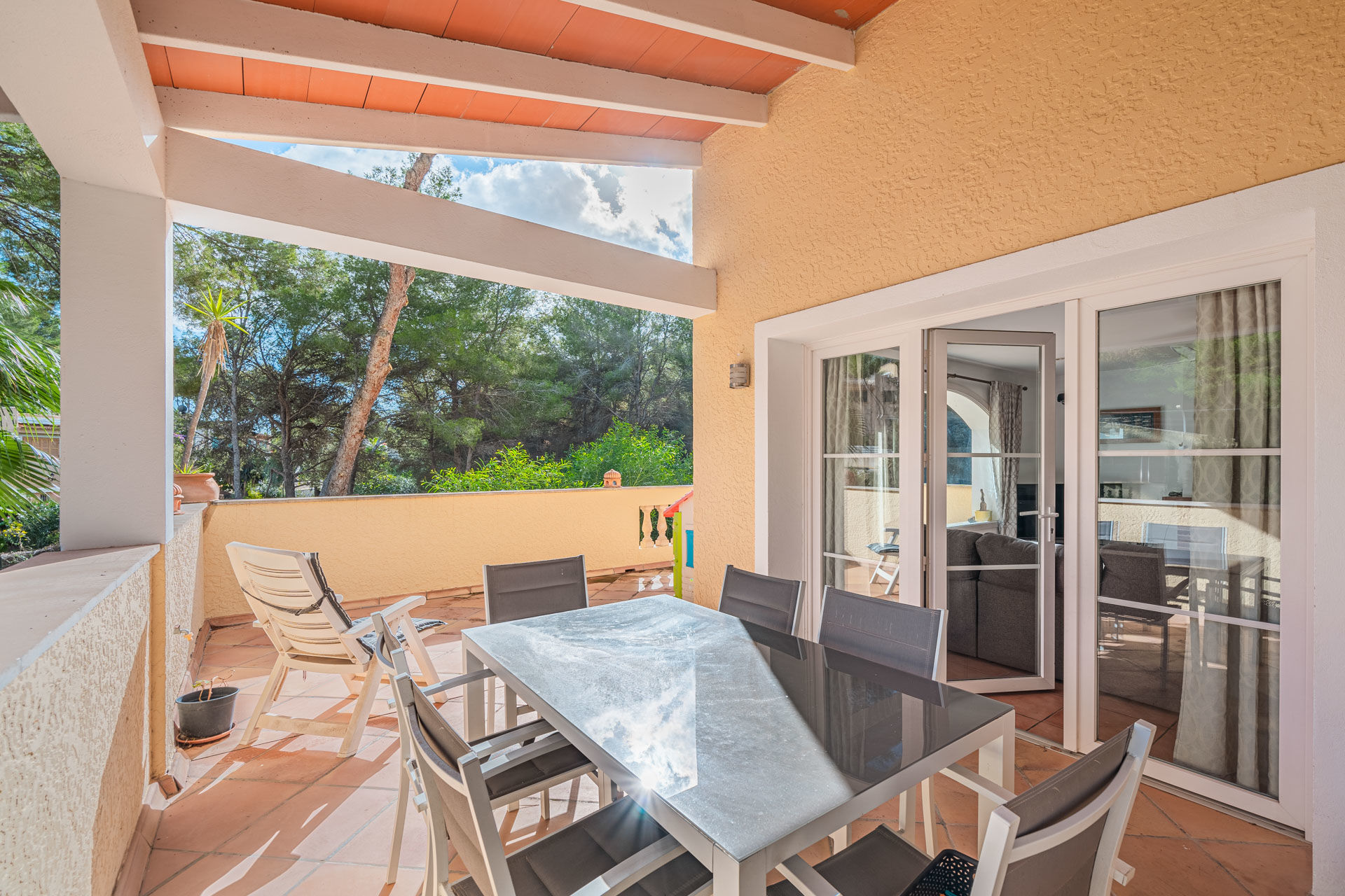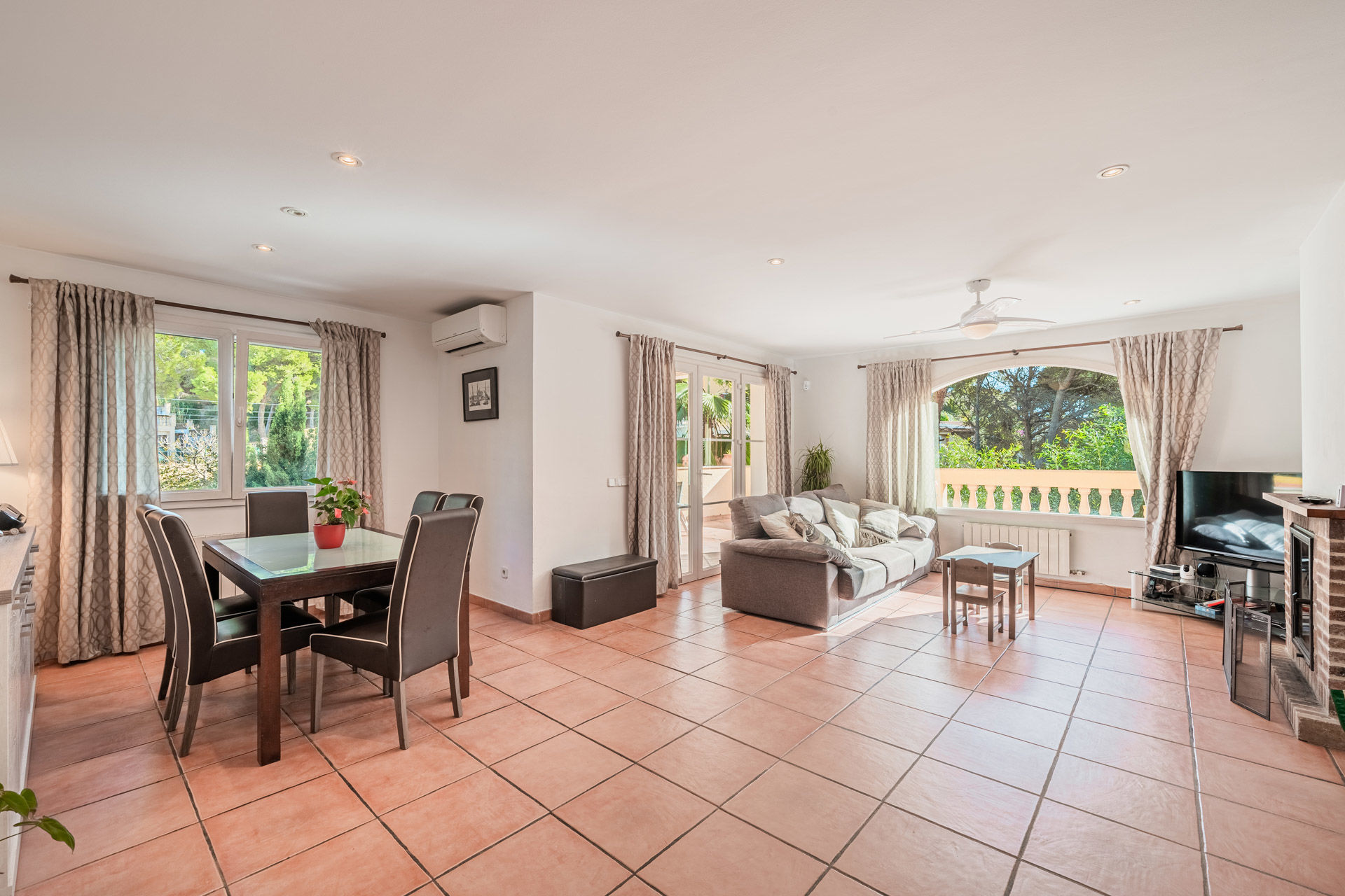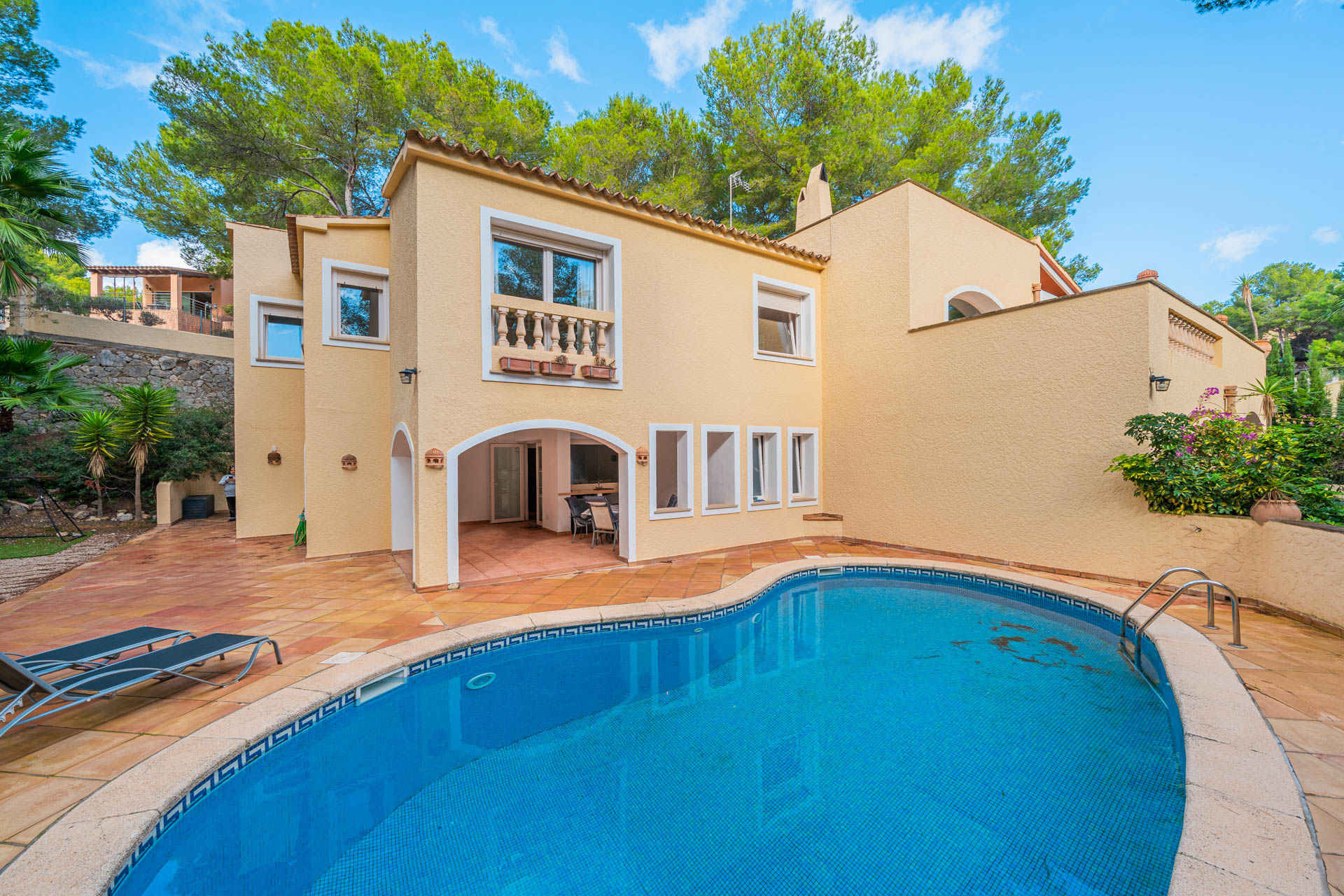 Dieses attraktive Chalet in Costa de la Calma bietet einen wunderschönen Ausblick auf den Wald und befindet sich in einer sehr ruhigen Wohngegend, in Strandnähe, im Südwesten der Insel Mallorca. Die sonnige, südlich ausgerichtete Immobilie verfügt über eine bebaute Fläche von ca. 314 m2 verteilt auf 2 Etagen wie folgt: Im ersten Stock befindet sich ein geräumiges Wohn-/ Esszimmer mit Kamin und Zugang zur Terrasse, eine möblierte und ausgestattete Küche, 3 Schlafzimmer, sowie 2 Bäder. Das Erdgeschoss bietet einen Fitnessraum, der auch als zusätzliches Schlafzimmer genutzt werden kann, ein Badezimmer und einen Loungebereich. Der charmante Aussenbereich bietet eine grosszügige Terrasse mit einem fantastischen Pool, sowie einen schönen, pflegeleichten Garten mit Grillplatz, wo Sie das wunderbare, mediterrane Ambiente der Insel geniessen können. Zu den Ausstattungsmerkmalen dieser attraktiven, renovierungsbedürftigen Villa in Costa de la Calma zählen: Klimaanlage warm/ kalt, Zentralheizung, doppelt verglaste Fenster und Fliesenböden. Zur Verfügung steht eine Garage mit Platz für 2 Fahrzeuge. Es handelt sich um eine grüne und ruhige Gegend, der nächste herrliche Strand mit kristallklarem Wasser ist nur wenige Autominuten entfernt.