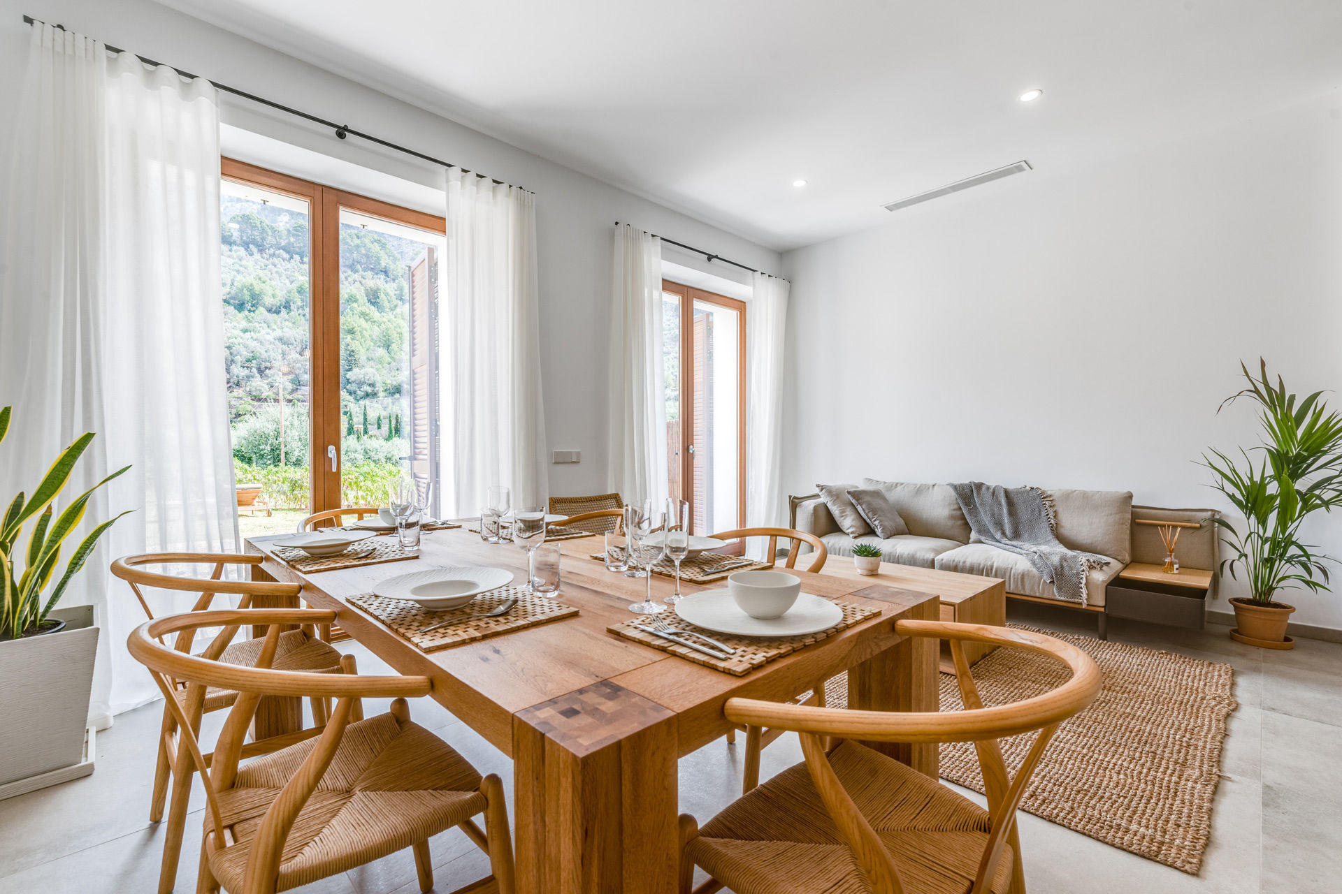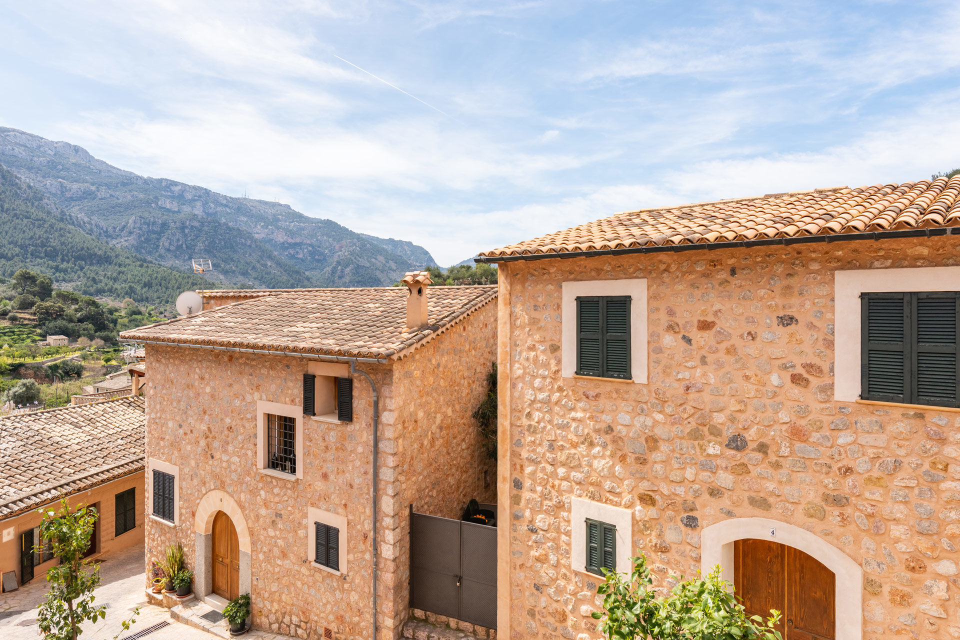 Inmitten der beeindruckenden Berglandschaft der traumhaften Sierra de Tramontana gelegen, präsentieren wir Ihnen dieses exklusive Neubau-Reihenhaus in Fornalutx. Das exklusive Objekt ist Teil von 6 hochwertigen Reihenhäusern mit unschlagbarem Blick auf die atemberaubende Bergkulisse. Die lichtdurchfluteten Immobilien, die auf dem letzten Baugrundstück in Fornalutx errichtet wurden, bieten eine perfekte Kombination aus rustikalem und modernem Design. Jede Immobilie hat eine Grundstücksfläche zwischen 288 m2 und 1043 m2 und eine grosszügige Wohnfläche, die sich auf 3 geräumige Etagen verteilt. Dieses Haus ist eines der Größten, mit einer Wohnfläche von 168 m2, die sich auf eine schöne Eingangshalle, ein fantastisches Wohn-/Esszimmer mit grossen, lichtdurchfluteten Fenstern, die zum herrlichen Garten mit privatem Pool und wundervollem Blick auf die Berge führen, eine exzellente, mit Siemens- und Liebherr-Geräten ausgestattete Küche, 3 Schlafzimmer mit Einbauschränken und 3 Bäder en-suite aufteilt. Weitere Ausstattungsmerkmale: Fussbodenheizung, Klimaanlage warm/kalt, doppelt verglaste Fenster aus Iroko-Holz, Stein- und Keramikböden, Domotiksystem, automatische Bewässerungsanlage, Abstellraum sowie 2 Parkplätze, einer in der Garage und der andere im Freien. Fornalutx, inmitten der Sierra de Tramontana, nur 10 Kilometer von der Nordküste Mallorcas entfernt, gilt als eines der schönsten Dörfer Spaniens.