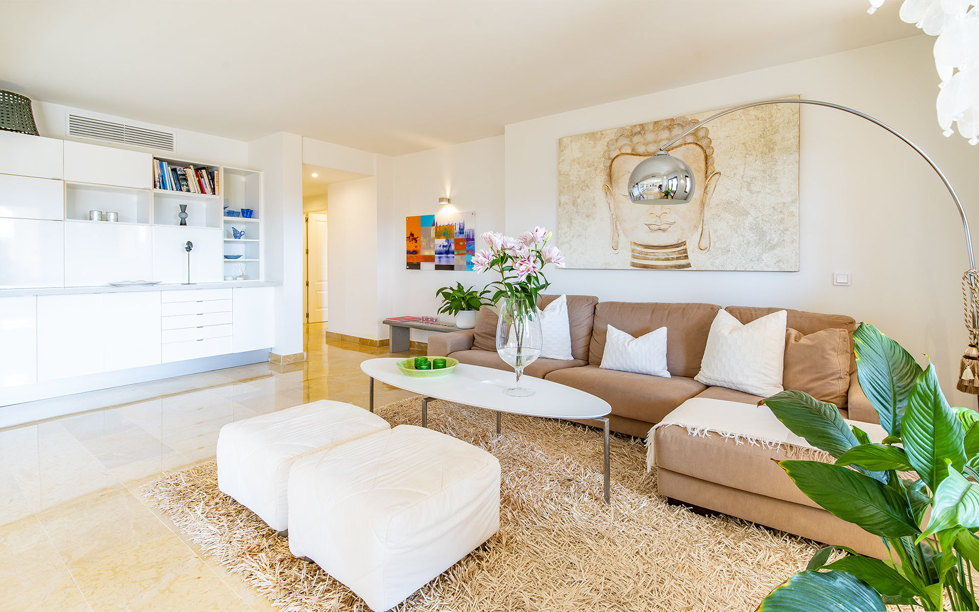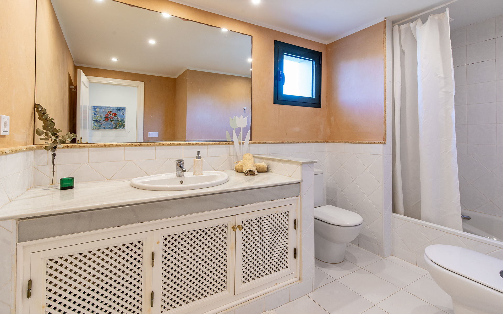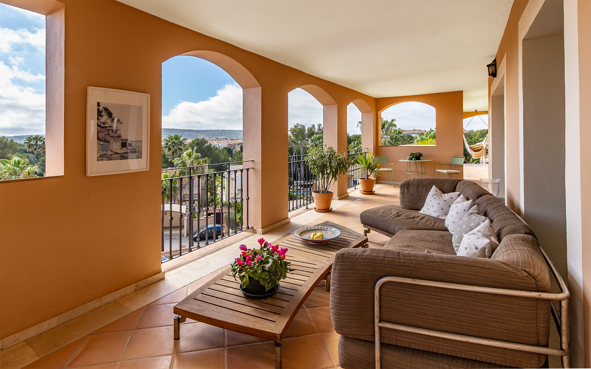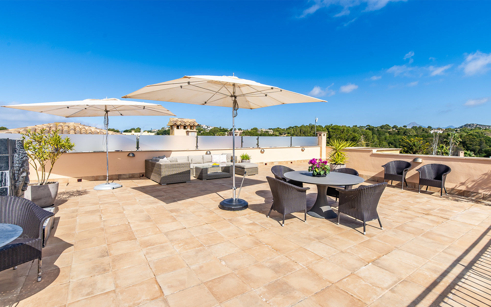 Mit einer bebauten Fläche von ca. 277 m2 erstreckt sich das Penthouse über die gesamte obere Etage und hat zudem eine grosse private Dachterrasse mit wunderbarem Panorama-Meerblick und absoluter Privatsphäre. Die beeindruckende Immobilie zeichnet sich durch die lichtdurchfluteten und grosszügig gestalteten Räumlichkeiten aus. Jedes Schlafzimmer hat einen Zugang zur Terrasse, die sich über die ganze länge des Penthouse erstreckt. Insgesamt stehen 4 grosse Schlafzimmer und 4 Badezimmer (3 davon en Suite) zur Verfügung. Der geräumige Wohn-/-Essbereich mit angrenzender und offener Küche hat Zugang zu einer grossen überdachten Terrasse. Hier kann man das Frühstück in privater Atmosphäre bei wunderschöner Aussicht auf die mediterrane Landschaft geniessen.