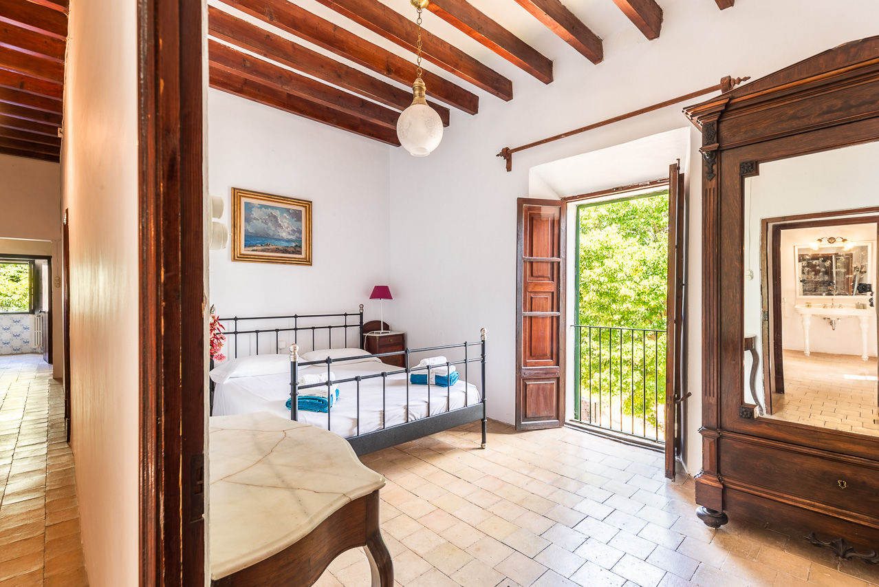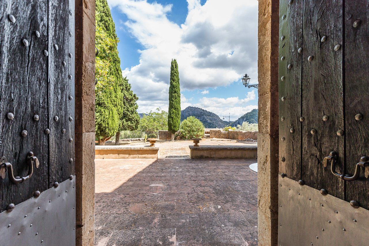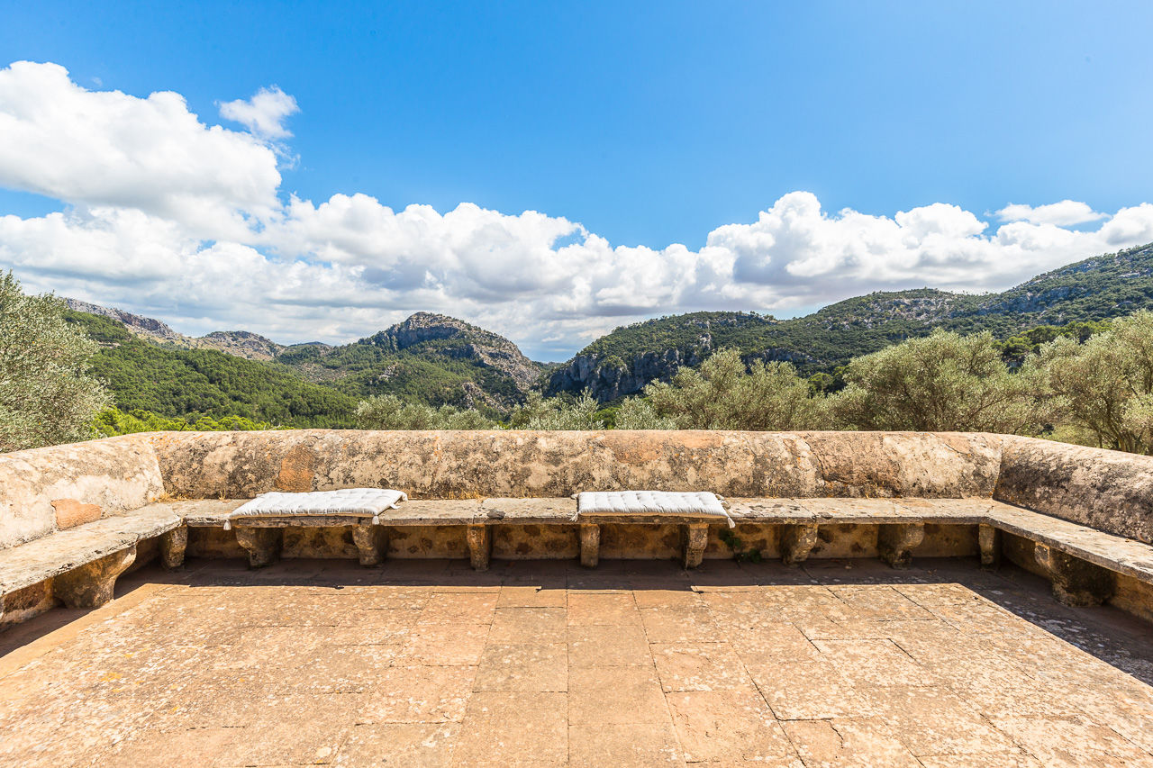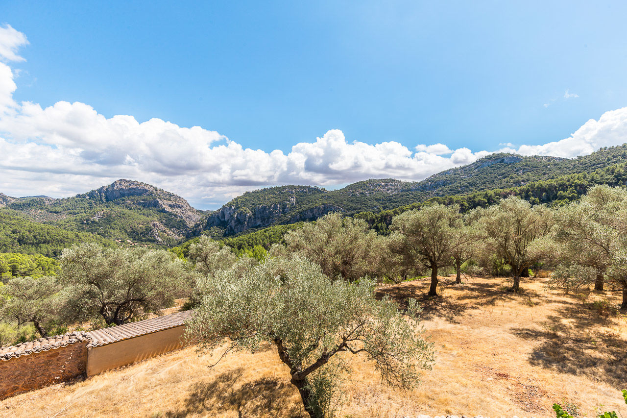 Dieses wunderschöne Herrenhaus aus dem 16. Jahrhundert in Valldemossa liegt auf einem riesigen Grundstück von ca. 710.000 m2, eingebettet in die magische Bergwelt der Sierra de Tramuntana. Die spektakuläre bebaute Fläche von 1.450 qm, die 1980 sorgfältig restauriert und instand gehalten wurde, verteilt sich auf ein 2-stöckiges Haupthaus, ein separates Gästehaus mit eigenem Eingang, mehrere spektakuläre Terrassen mit Panoramablick und einen erfrischenden Swimmingpool. Das Haupthaus ist wie folgt aufgeteilt: Das Erdgeschoss besteht aus dem Haupteingang, dem Wohnzimmer und der Küche, die zum zweiten Wohnzimmer und einer 130 Jahre alten Weinpresse aus Stein führt. Die Hintertür führt auf die offene Terrasse mit einem Ofen. Die 2. Etage bietet Zugang zum privaten Pool und Sitzbereich. Auf der gleichen Etage gibt es ein grosses Wohnzimmer von ca. 100 m2, 5 Schlafzimmer mit Balkonen und herrlicher Aussicht und 2 separate Bäder. Die 2. Etage muss komplett renoviert werden und kann in ein oder zwei Penthousewohnungen umgewandelt werden. Das separate Gästehaus besteht aus 3 Schlafzimmern, 2 Bädern, Küche, Wohnzimmer und einer privaten Garage. Das historische Anwesen zeichnet sich durch absolute Ruhe aus, die man in romantischen Höfen und endlosen Olivenhainen mitten im Wald geniessen kann. Darüber hinaus verfügt es über eine Touristenlizenz für 12 Personen. Valldemossa ist eines der schönsten Dörfer.