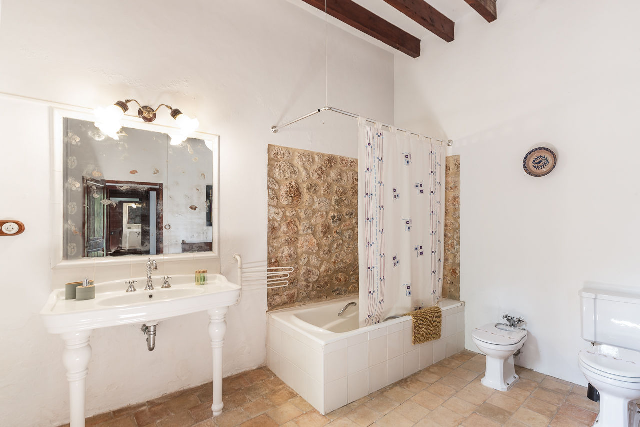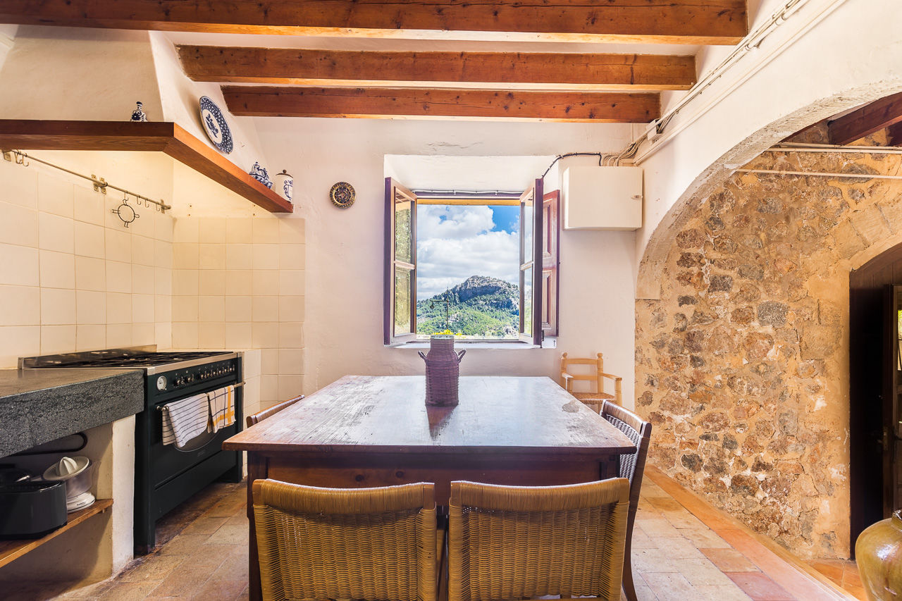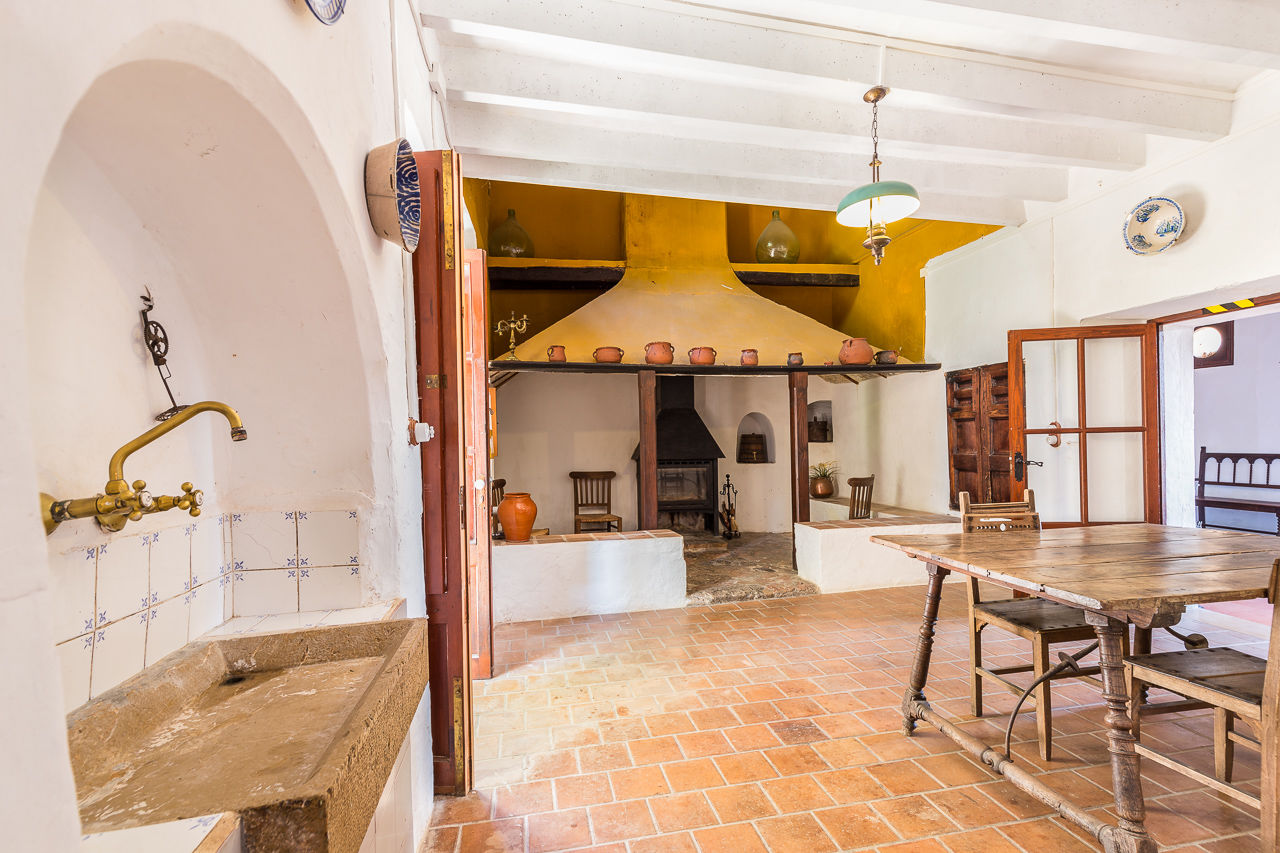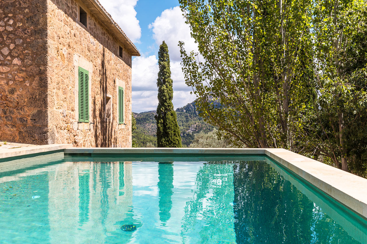 Dieses wunderschöne Herrenhaus aus dem 16. Jahrhundert in Valldemossa liegt auf einem riesigen Grundstück von ca. 710.000 m2, eingebettet in die magische Bergwelt der Sierra de Tramuntana. Die spektakuläre bebaute Fläche von 1.450 qm, die 1980 sorgfältig restauriert und instand gehalten wurde, verteilt sich auf ein 2-stöckiges Haupthaus, ein separates Gästehaus mit eigenem Eingang, mehrere spektakuläre Terrassen mit Panoramablick und einen erfrischenden Swimmingpool. Das Haupthaus ist wie folgt aufgeteilt: Das Erdgeschoss besteht aus dem Haupteingang, dem Wohnzimmer und der Küche, die zum zweiten Wohnzimmer und einer 130 Jahre alten Weinpresse aus Stein führt. Die Hintertür führt auf die offene Terrasse mit einem Ofen. Die 2. Etage bietet Zugang zum privaten Pool und Sitzbereich. Auf der gleichen Etage gibt es ein grosses Wohnzimmer von ca. 100 m2, 5 Schlafzimmer mit Balkonen und herrlicher Aussicht und 2 separate Bäder. Die 2. Etage muss komplett renoviert werden und kann in ein oder zwei Penthousewohnungen umgewandelt werden. Das separate Gästehaus besteht aus 3 Schlafzimmern, 2 Bädern, Küche, Wohnzimmer und einer privaten Garage. Das historische Anwesen zeichnet sich durch absolute Ruhe aus, die man in romantischen Höfen und endlosen Olivenhainen mitten im Wald geniessen kann. Darüber hinaus verfügt es über eine Touristenlizenz für 12 Personen. Valldemossa ist eines der schönsten Dörfer.