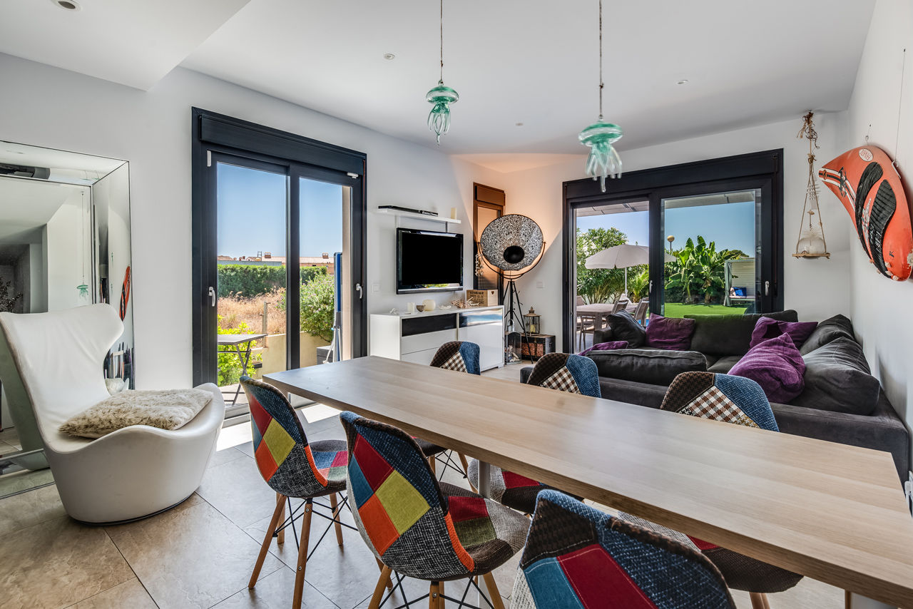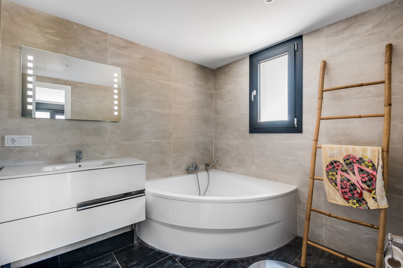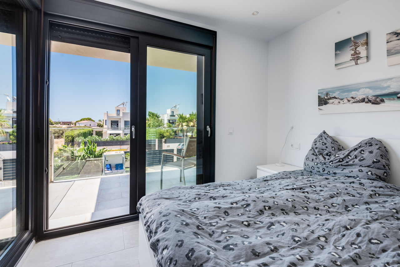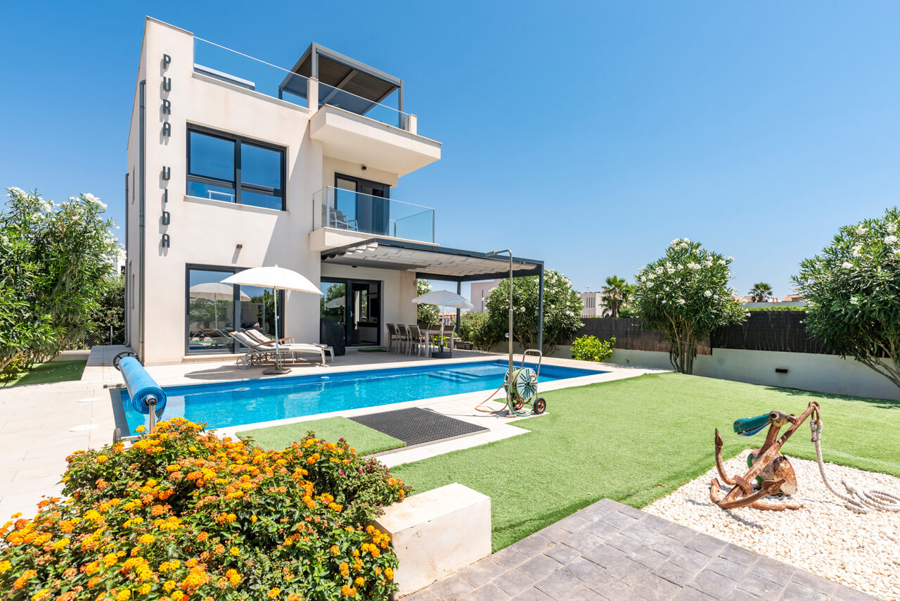 Diese tolle Villa mit privatem Pool und Meerblick in Sa Rapita befindet sich nur wenige Minuten vom berühmten Strand Es Trenc, der als einer der schönsten Strände Mallorcas bezeichnet wird. Die attraktive Immobilie mit Südausrichtung wurde 2018 fertiggebaut. Das Grundstück hat ca. 450 m2 und die bebaute Fläche beträgt ca. 156 m2, die sich folgendermassen aufteilen: Ein sonniges Wohn-/Esszimmer mit komplett ausgestatteter amerikanischer Küche, 4 komfortable Schlafzimmer mit Einbauschränken, 3 helle Badezimmer (1 davon ist en suite), ein Abstellraum sowie eine Waschküche. Der gemütliche Aussenbereich mit privatem Garten und grossem Pool ist ein idealer Ort um die sonnigen Tage zu geniessen. Weitere Merkmale sind Keramikböden, Klimaanlage warm/kalt, beheizter Pool, wartungsfreie ISO-Fenster. Das absolute Highlight ist die 70 m2 grosse Dachterasse mit Jacuzzi und traumhaftem Meerblick, wo man fantastische Sonnenuntergänge erlebt. Diese moderne Villa mit privatem Pool und Meerblick in Sa Rapita verfügt auch über 3 Parkplätze. Sa Rapita ist ein Ort zum Wohlfühlen an der Südküste Mallorcas. In der Nähe gibt es wunderschöne Strände mit kristallklarem Wasser wie Es Trenc, der auch durch die Salinen etwas Besonders ist. Der internationale Flughafen von Palma de Mallorca ist 35 Fahrminuten entfernt.