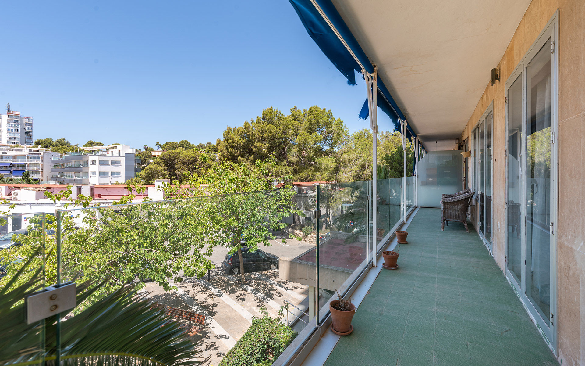 Dieses lichtdurchflutete Apartment in Palmanova bietet Teilmeerblick von den Schlafzimmern und befindet sich im zweiten Stock eines Gebäudes mit Aufzug, in 1. Meereslinie, nur wenige Schritte vom Strand entfernt, im wunderschönen Südwesten der Insel Mallorca. Die Wohnung ist renovierungsbedürftig und verfügt über eine Wohnfläche von ca. 87 m2, die wie folgt aufgeteilt sind: ein helles Wohnzimmer mit Zugang zum Balkon, eine möblierte und ausgestattete Küche, 3 gemütliche Schlafzimmer (2 davon mit Teilmeerblick), ein Badezimmer, ein Abstellraum, sowie ein Hauswirtschaftsraum. Die Immobilie ist mit Fliesenböden ausgestattet. Ein Stellplatz in der Tiefgarage ist im Preis inbegriffen. Das Apartment ist eine gute Investitionsmöglichkeit, da es eine sehr attraktive Lage direkt am Meer und direkten Zugang zu zwei wunderschönen Stränden mit türkisfarbenem Wasser bietet.