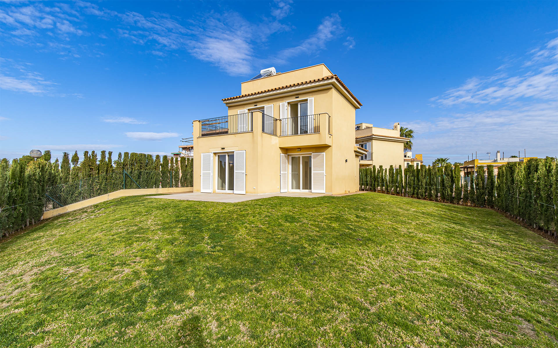 In der schönen Urbanisation “El Paraíso” im Süden der Insel Mallorca, ganz in der Nähe des fabelhaften Strandes von Es Trenc, einem Naturpark mit türkisfarbenem Wasser, präsentieren wir diese wunderschönen Neubauvillen in Sa Rápita. Die Villen mit Meerblick von der privaten Dachterrasse und einer bebauten Fläche von ca. 150 m2 (ungefähr 126 m2 Wohnfläche) bestehen aus einem herrlichen Wohn-/Esszimmer mit Zugang zum schönen Privatgarten, einer modernen und ausgestatteten Küche, 3 geräumigen Schlafzimmern mit Einbauschränken, 2 Bädern und einem separaten Gäste-WC. Die aussergewöhnlichen Gemeinschaftsbereiche lassen keine Wünsche offen und bieten ihren Besitzern einen grossartigen erfrischenden Swimmingpool, Tennisplätze, einen 18-Loch-Minigolfplatz, mehrere Grünflächen zum Entspannen und ein gemütliches Restaurant. Alle Villen sind mit Fussbodenheizung und Klimaanlage ausgestattet, um das ganze Jahr über eine angenehme Temperatur zu gewährleisten, ausserdem verfügen sie über Keramikfliesen, Solarwarmwasser, Abstellraum, weiss lackierte Innentüren und energieeffiziente Doppelglasfenster. Es handelt sich um eine fantastische Möglichkeit, eine dieser 16 beeindruckenden und gemütlichen Villen nur wenige Minuten vom Meer und dem berühmtesten Strand Mallorcas entfernt zu erwerben. Es Trenc ist ein sieben Kilometer langer Naturstrand an der Südküste Mallorcas mit wunderschönem weissen Sand, türkisfarbenem Meer und flachen Dünen.