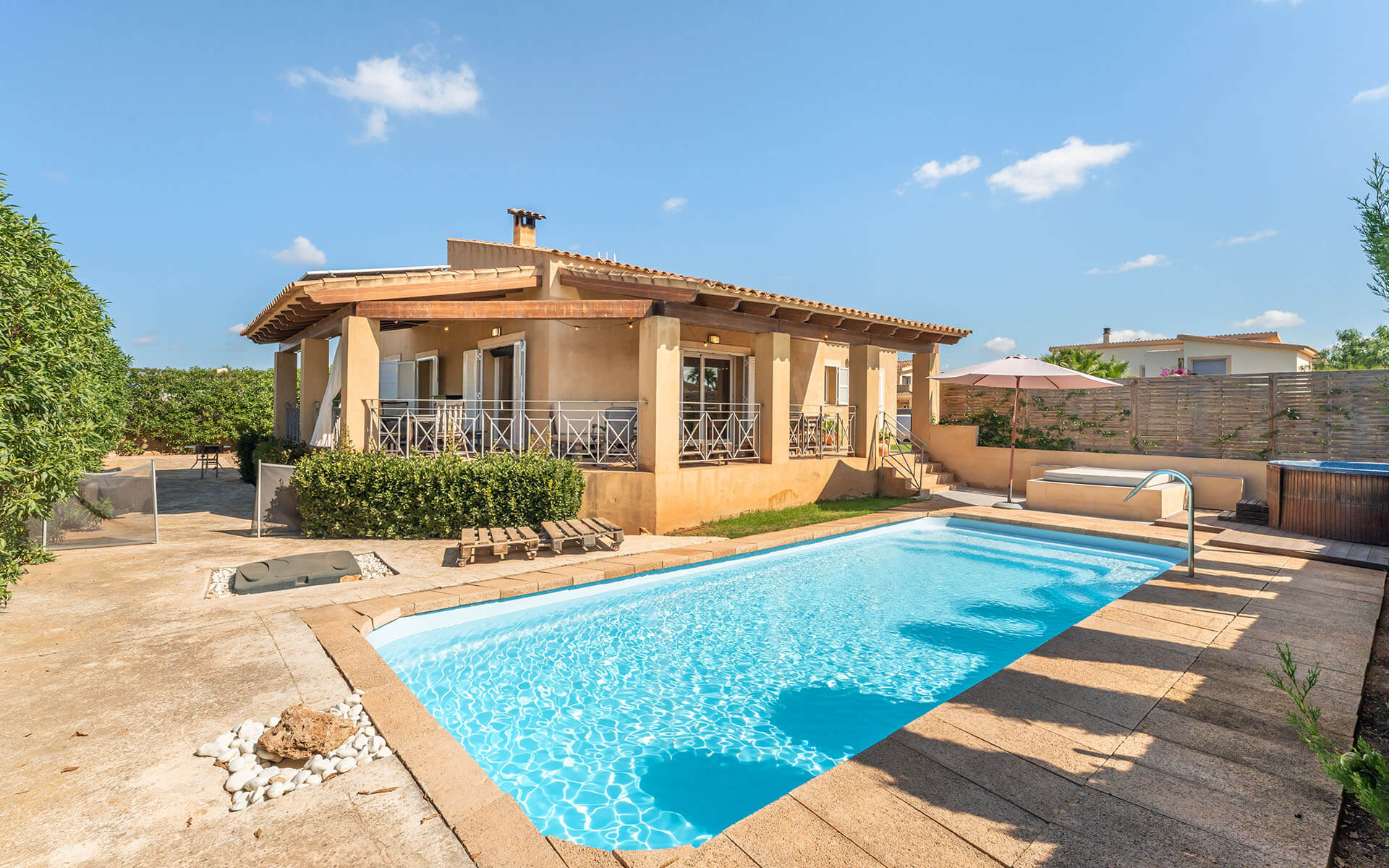 Dieses sonnige Chalet in Sa Rápita verfügt über Ferienvermietungslizenz für 6 Personen und liegt in einer ruhigen Wohngegend, nur wenige Autominuten von einem tollen Strand mit kristallklarem Wasser entfernt, im Südosten der wunderschönen Insel Mallorca. Die attraktive Immobilie verfügt über eine bebaute Fläche von ca. 293 m2, die sich wie folgt aufteilen: ein helles Wohn-/ Esszimmer mit Kamin und Zugang zur Terrasse, eine Küche, ein Hauswirtschaftsraum, 3 Schlafzimmer (das Hauptschlafzimmer mit Ankleideraum), sowie 2 Badezimmer (eines davon en-Suite). Im Keller befindet sich der Maschinenraum mit Solaranlage, sowie eine Garage mit Platz für 2 Autos und einer Ladestation für Elektro- oder Hybridfahrzeuge. Der hübsche Aussenbereich mit einem Garten und herrlichem Pool lädt dazu ein, die tolle, mediterrane Atmosphäre der Insel zu geniessen. Zu den Ausstattungsmerkmalen dieses Chalets in Sa Rápita zählen: Klimaanlage warm/ kalt, Vorinstallation für Heizung, doppelt verglaste Fenster, Sonnenkollektoren und rustikale Steinzeugböden. Die Immobilie bietet eine ruhige Lage, nur wenige Autominuten vom Meer und dem schönen Strand entfernt.