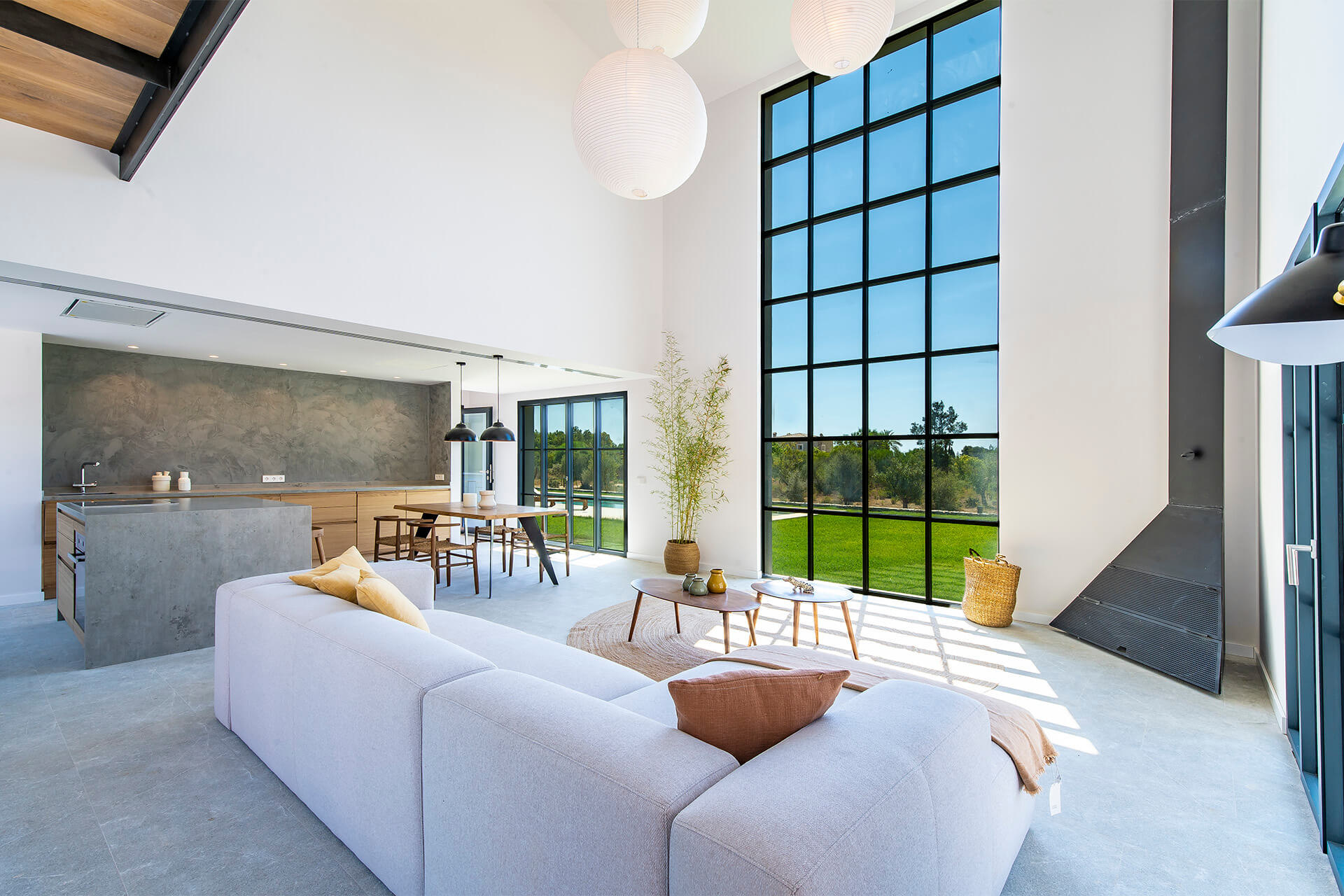 Diese elegante Neubau-Villa in Santa Maria mit Pool spiegelt einen einzigartigen Stil wider. Es wurden bei ihrem Bau nur hochwertige Materialien verwendet, die Naturelemente wie Stein, Holz und Metall miteinander verbinden. Diese Immobilie zeichnet sich durch ihre grossen Fenster aus, die viel Licht hereinlassen.